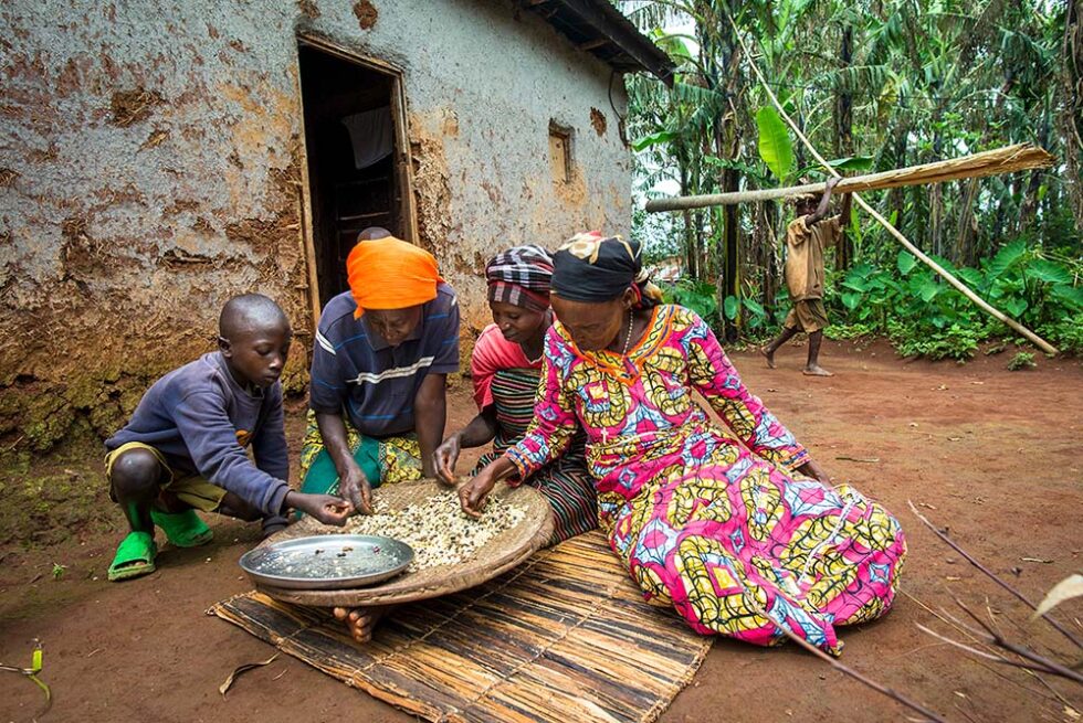 I met an amazing group of widows who formed a smaller collective within the Gashonga coffee cooperative to help each other out. They started with 150 trees 20 years ago and today are up to 1500 trees. Their coffee is one of the higher quality beans in the area. Their product is highly sought after. I spent a few hours with these strong women wandering around their small mud homes observing their daily activities. They support each other in work and in life. If the crop produces profits, they collectively decide who is in the most need of a bed, books for the children or other essentials.